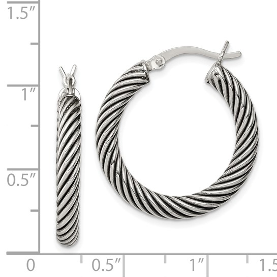 Sterling Silver Antiqued 3.25x25mm Twisted Hoop Earrings (Size 2)