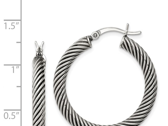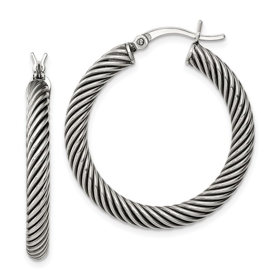 Sterling Silver Antiqued 3.25x30mm Twisted Hoop Earrings (Size 3)